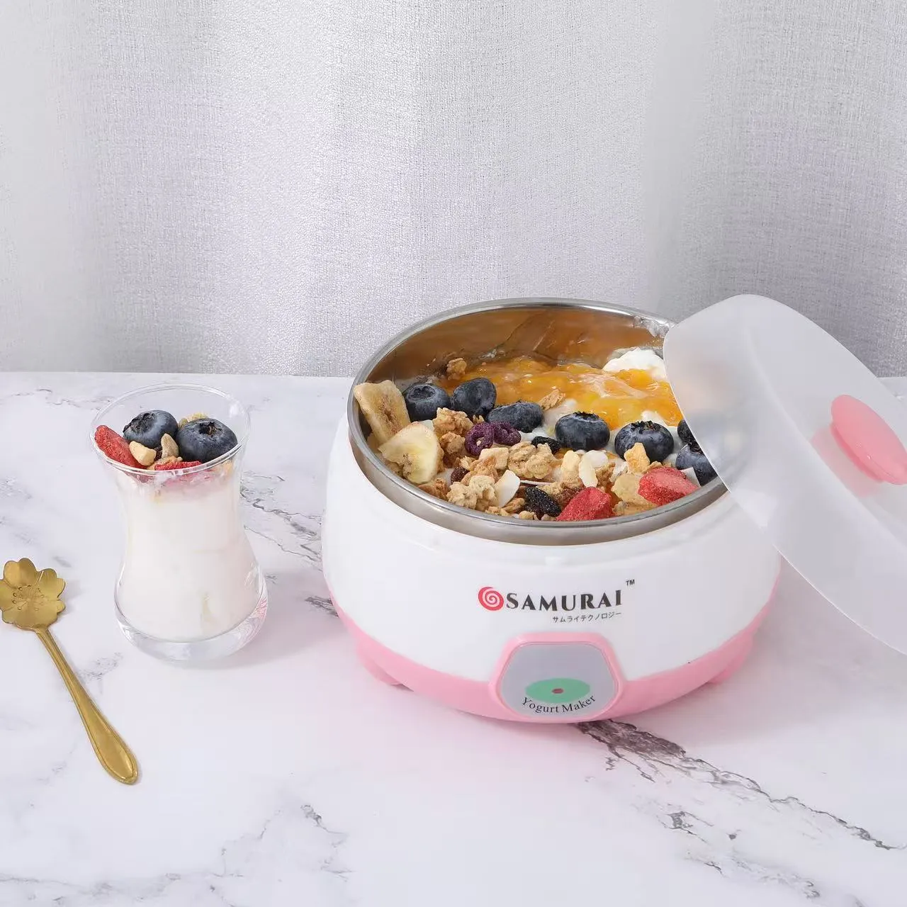 Whether you love plain yogurt, fruit-flavored, or Greek-style, this machine makes the process effortless. Its modern pink-and-white design adds a touch of elegance to your kitchen, while its stainless steel inner bowl ensures durability and hygiene.